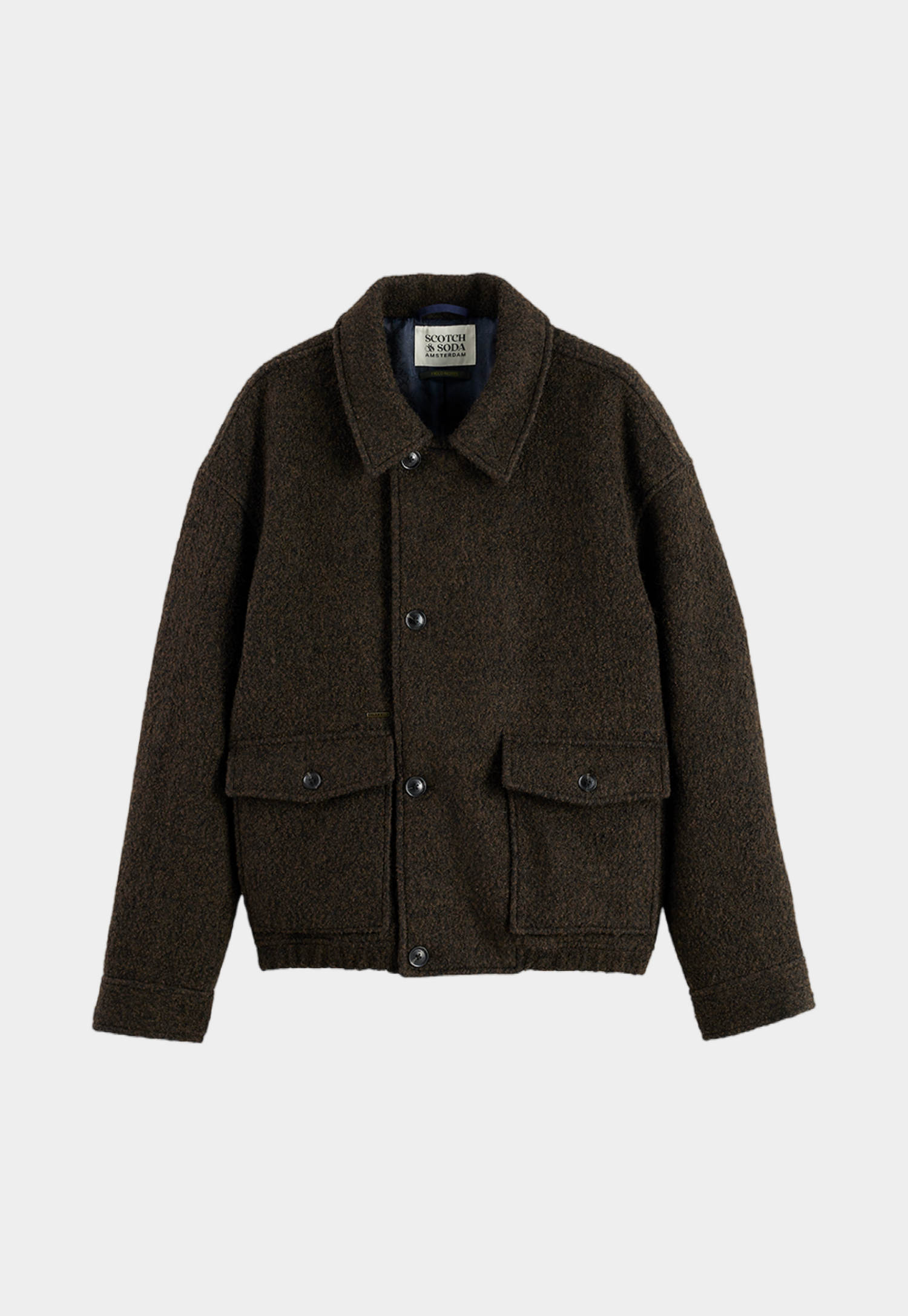Men's jacket from the Scotch & Soda brand. Classic, loose fit, with a classic collar, full-length button closure and zipper, with two front pockets.